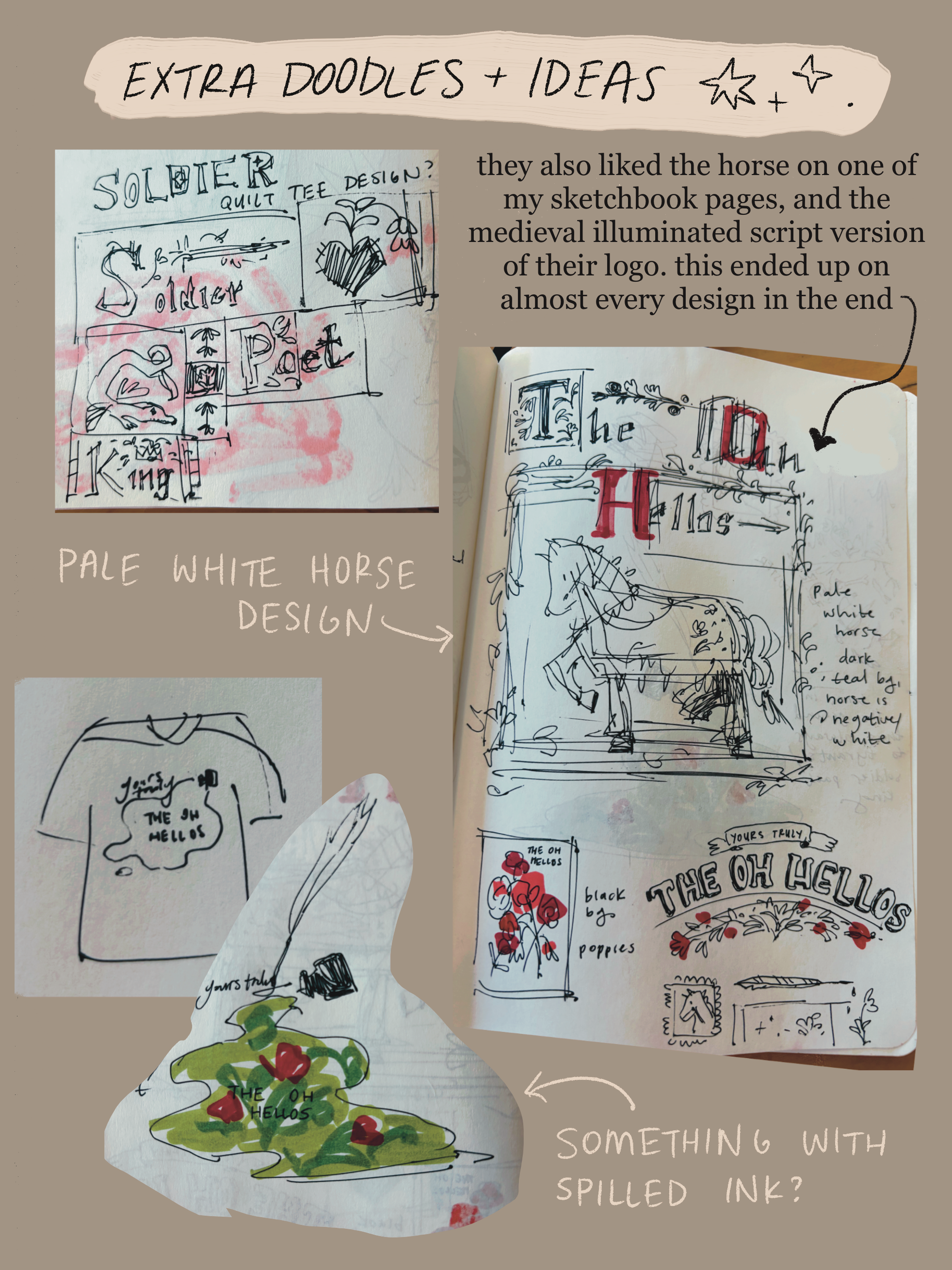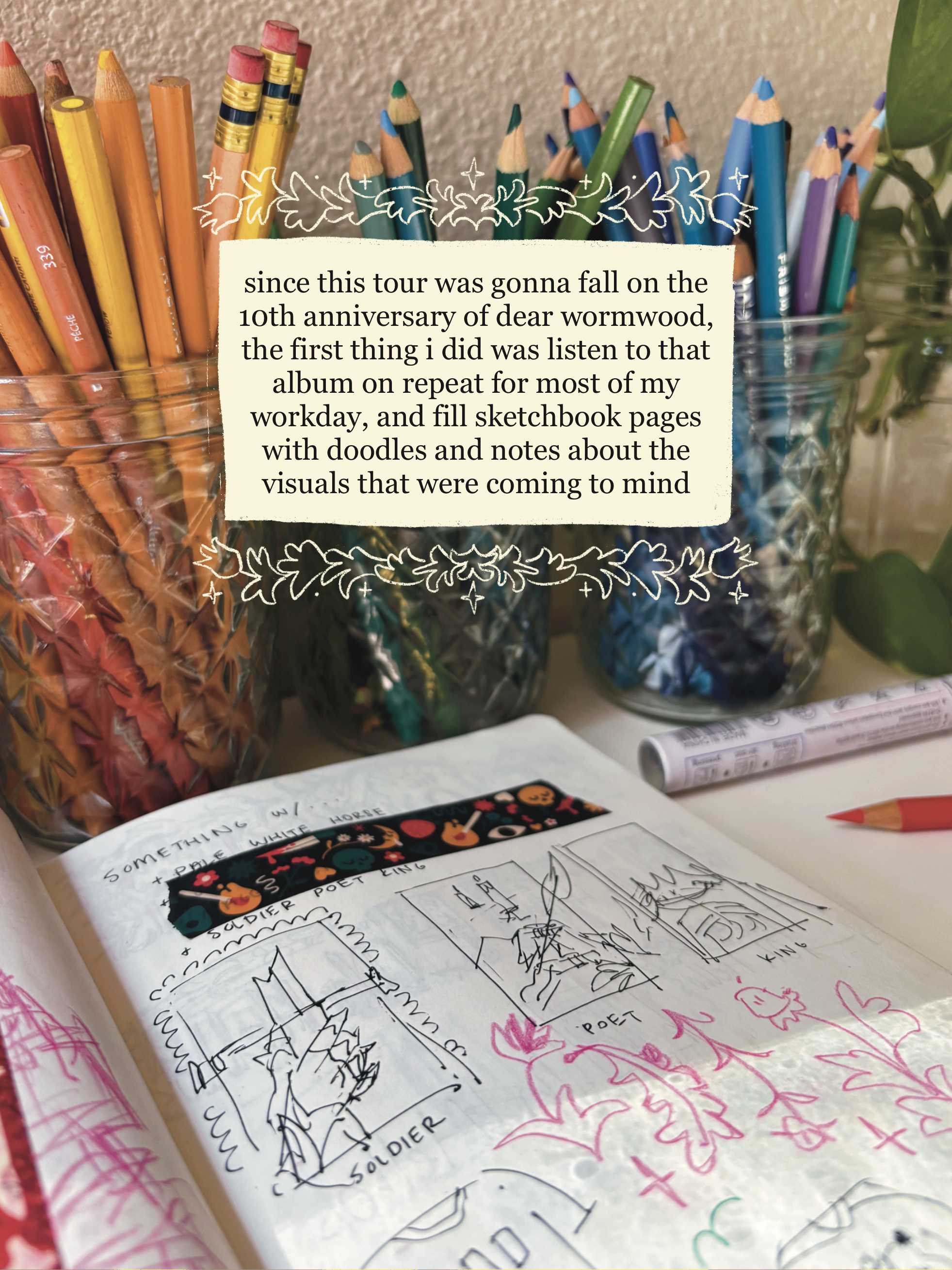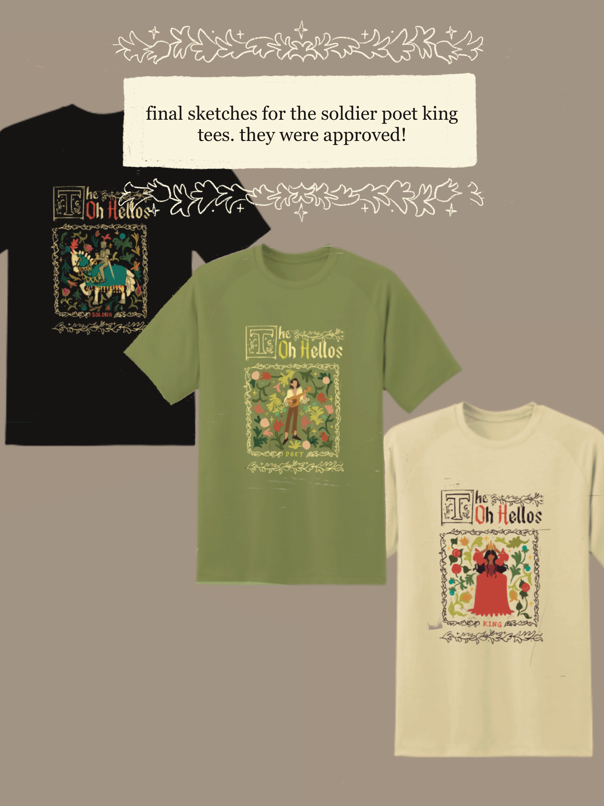 My favorite thing in the world is getting to create art with musicians, writers, and storytellers that I love. My biggest hope is that I can give back to them even 1% of the joy, comfort, and wonder that their work has given me. At the time I’m writing this, the band has been on tour with the merch I designed for 12 days. They posted this on their Instagram account last night.